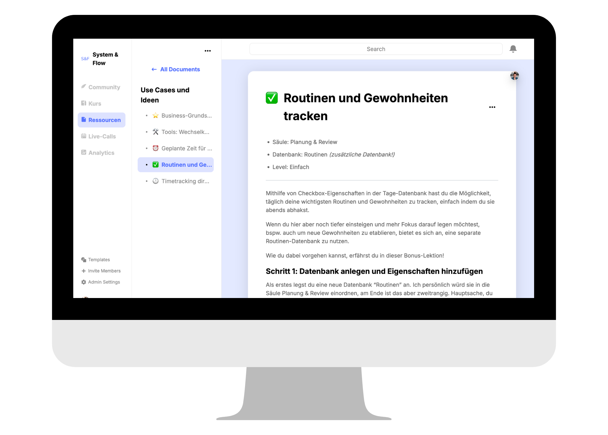 Wer kein One-size-fits-angeblich-all-Template von Notion nutzen, sondern wirklich die genau richtig passende Lösung für sein Business entwickeln möchte, dem kann ich den System & Flow Online-Kurs auf jeden Fall empfehlen.