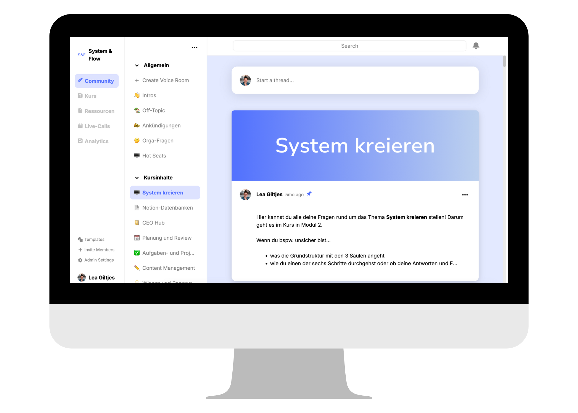 Man merkt in jedem Modul, wie viel Herzblut und Know-how Lea in den Kurs gesteckt hat. Sie geht individuell auf die Kursteilnehmer ein und schafft einen geschützten Rahmen für Austausch und Fragen. Die Möglichkeit, jederzeit Fragen stellen zu können und sich mit der Community auszutauschen, hat mir besonders geholfen, dranzubleiben und mein System Stück für Stück weiterzuentwickeln.