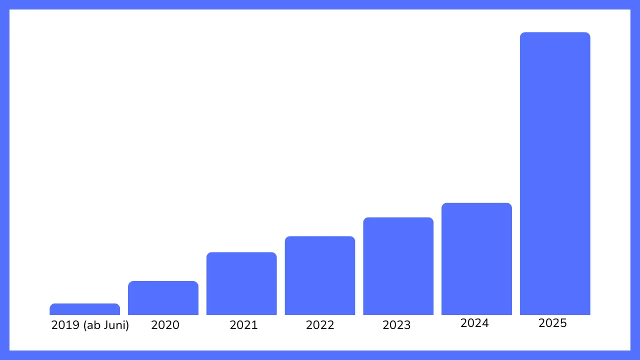 Und wo wir bei Zahlen sind – meinen tatsächlichen Umsatz werd ich hier nicht teilen; was aber vielleicht auch interessant ist: Meine Umsatzentwicklung der letzten Jahre (ab Start meiner Fulltime-Selbstständigkeit im Juni 2019).