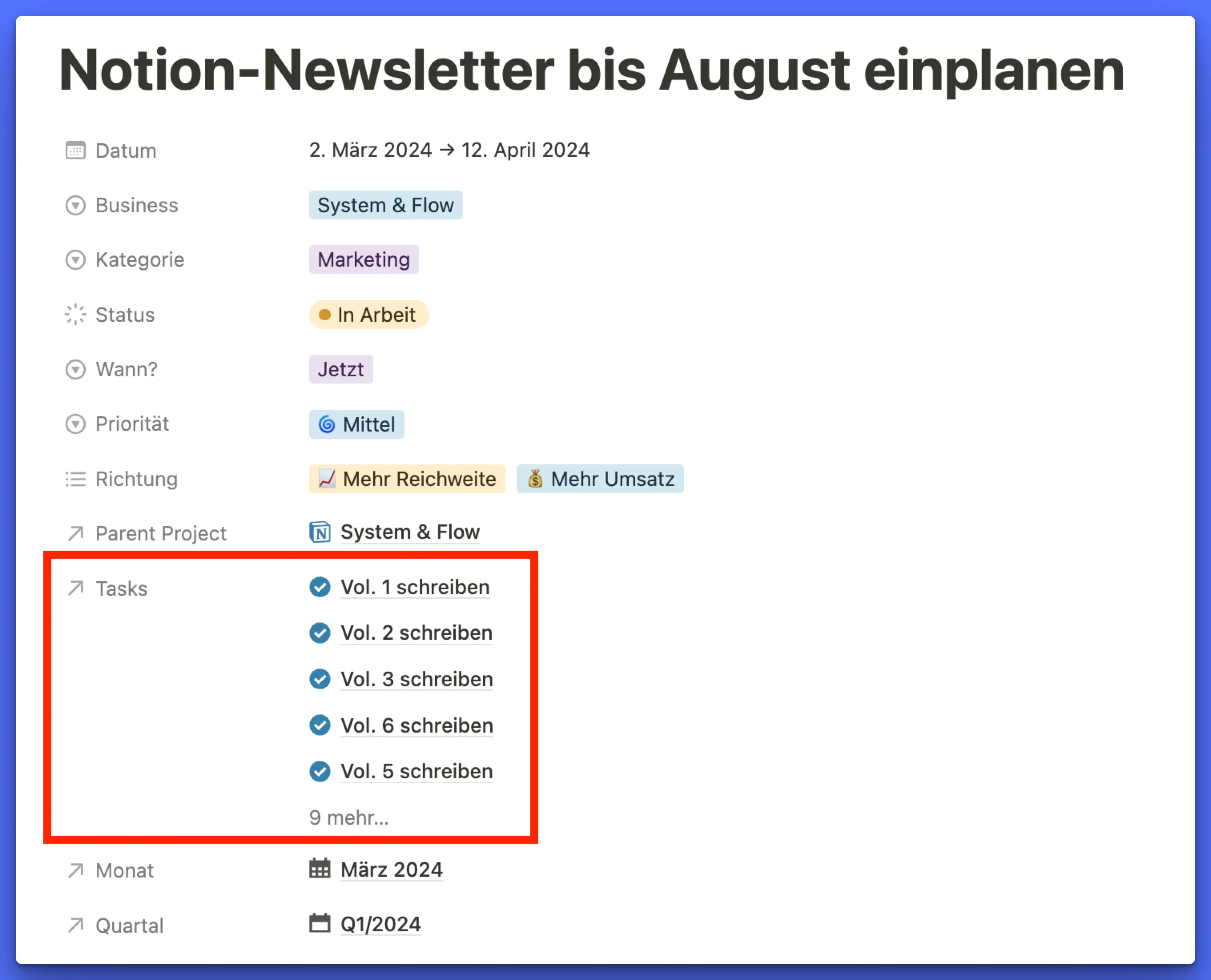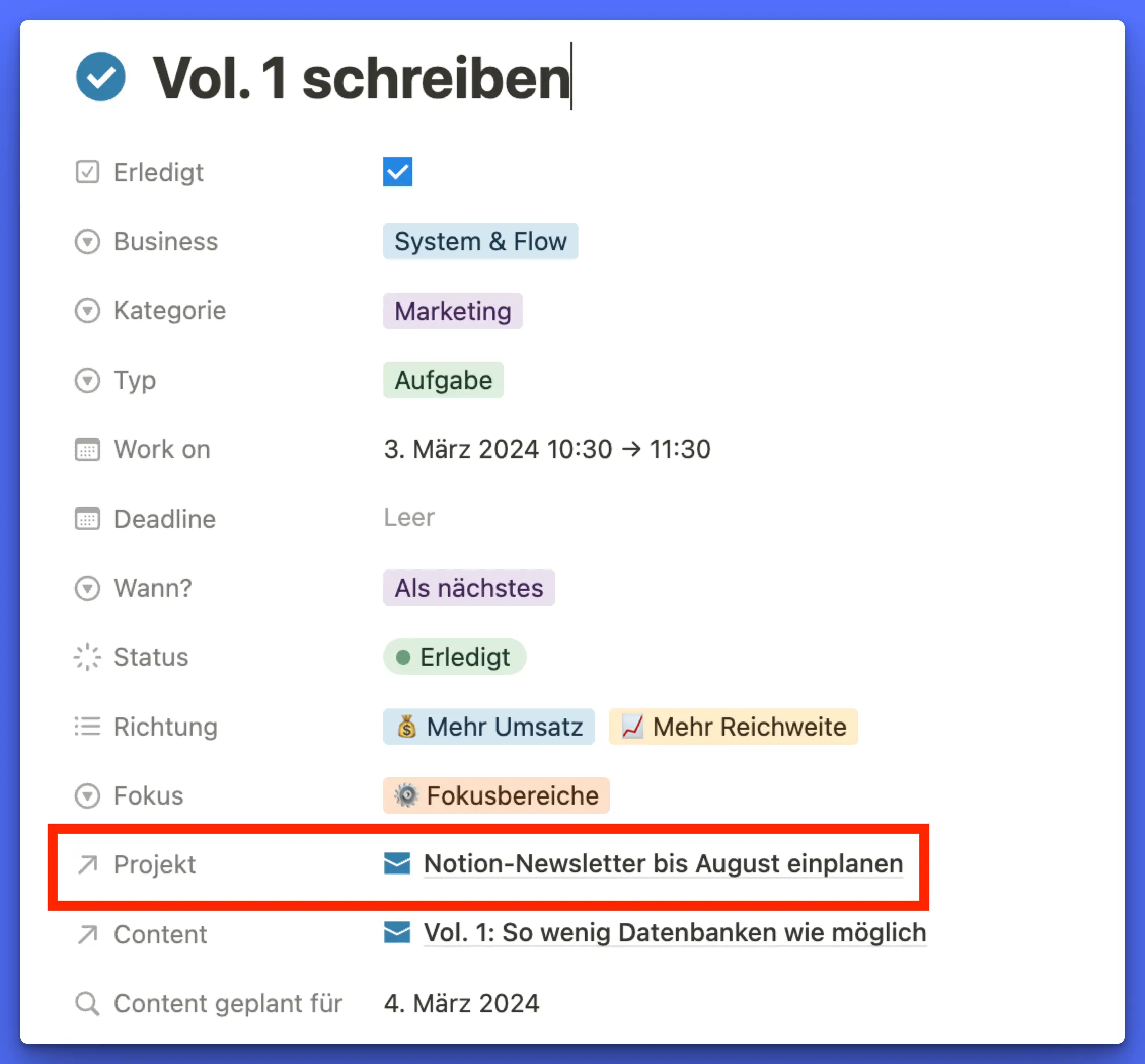 Und das ist es, was die Magie von Notion ausmacht: Die Möglichkeit, nur die relevanten Infos an der relevanten Stelle anzuzeigen!