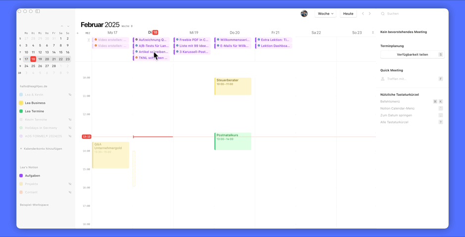 So kannst du Termine und Aufgaben mit dem Notion Kalender also super aufeinander abstimmen und deine Woche planen!