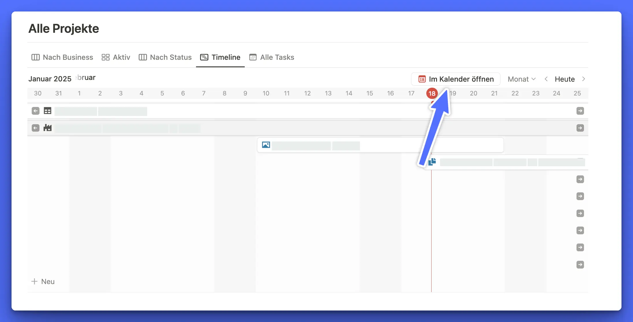 Ganz wichtig: Hier werden nur Datenbanken angezeigt, bei denen du in der Master-Datenbank eine Ansicht im Kalender- oder Timeline erstellt hast!