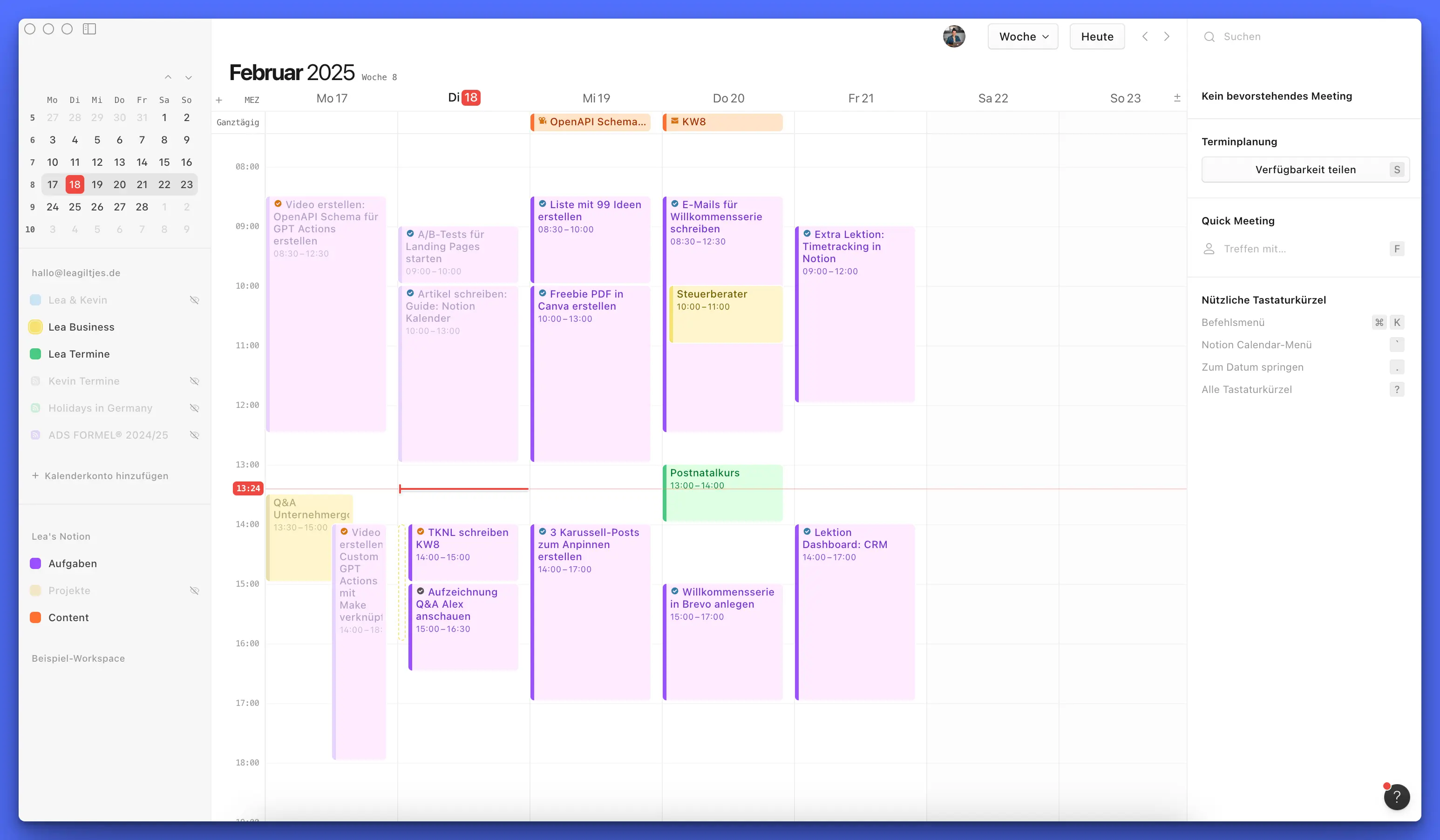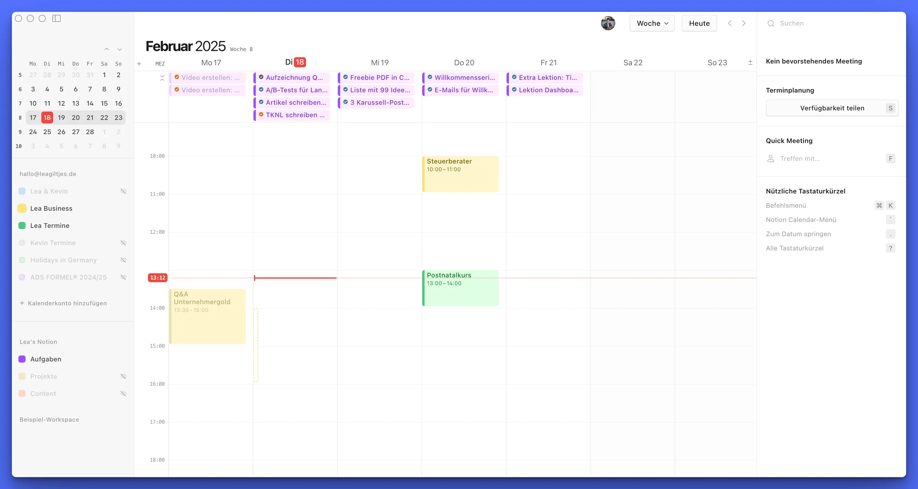 Meine Detail-Wochenplanung mache ich direkt im Kalender und lasse auch die Terminbuchung darüber laufen.