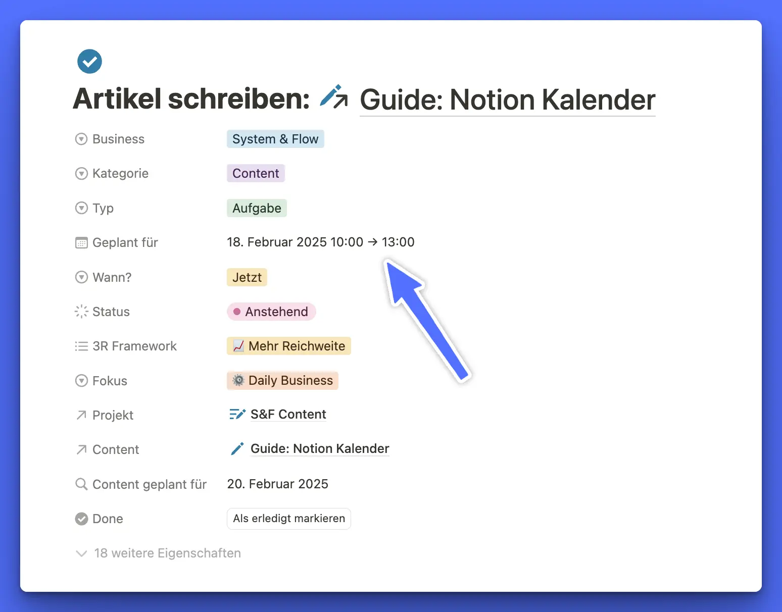 Wenn du eine Aufgabe über den Notion Kalender für einen bestimmten Zeitraum eingeplant hast, wird dir dieser übrigens auch automatisch bei Notion selbst angezeigt – das ist also alles zuverlässig synchronisiert: