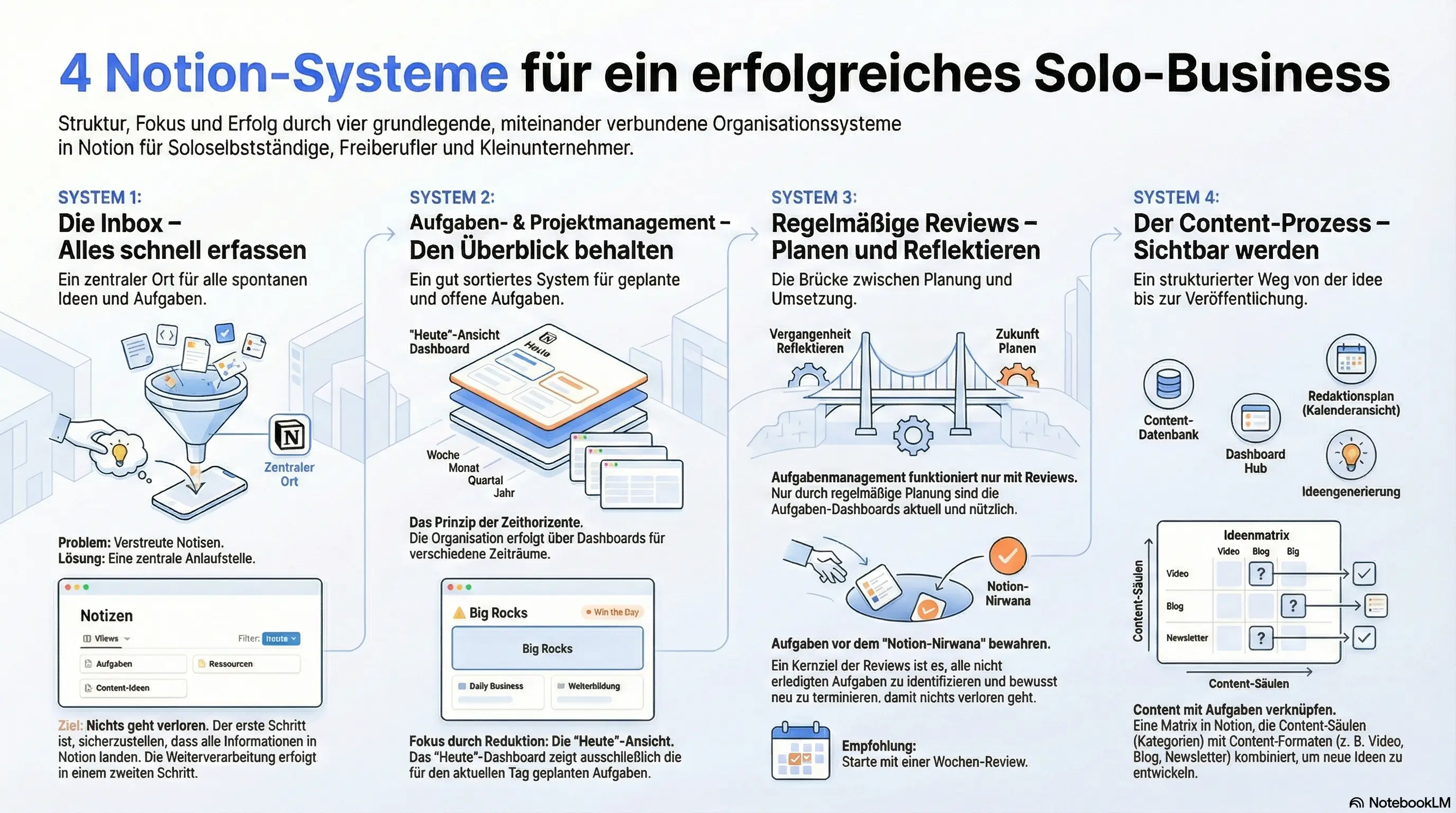 In diesem Artikel zeig ich dir vier Systeme, die in keinem Notion-Setup fehlen sollten, wenn du das erreichen willst – ganz unabhängig davon, wie dein Business genau aussieht. Es sind vier absolut grundlegende Elemente für Soloselbstständige!