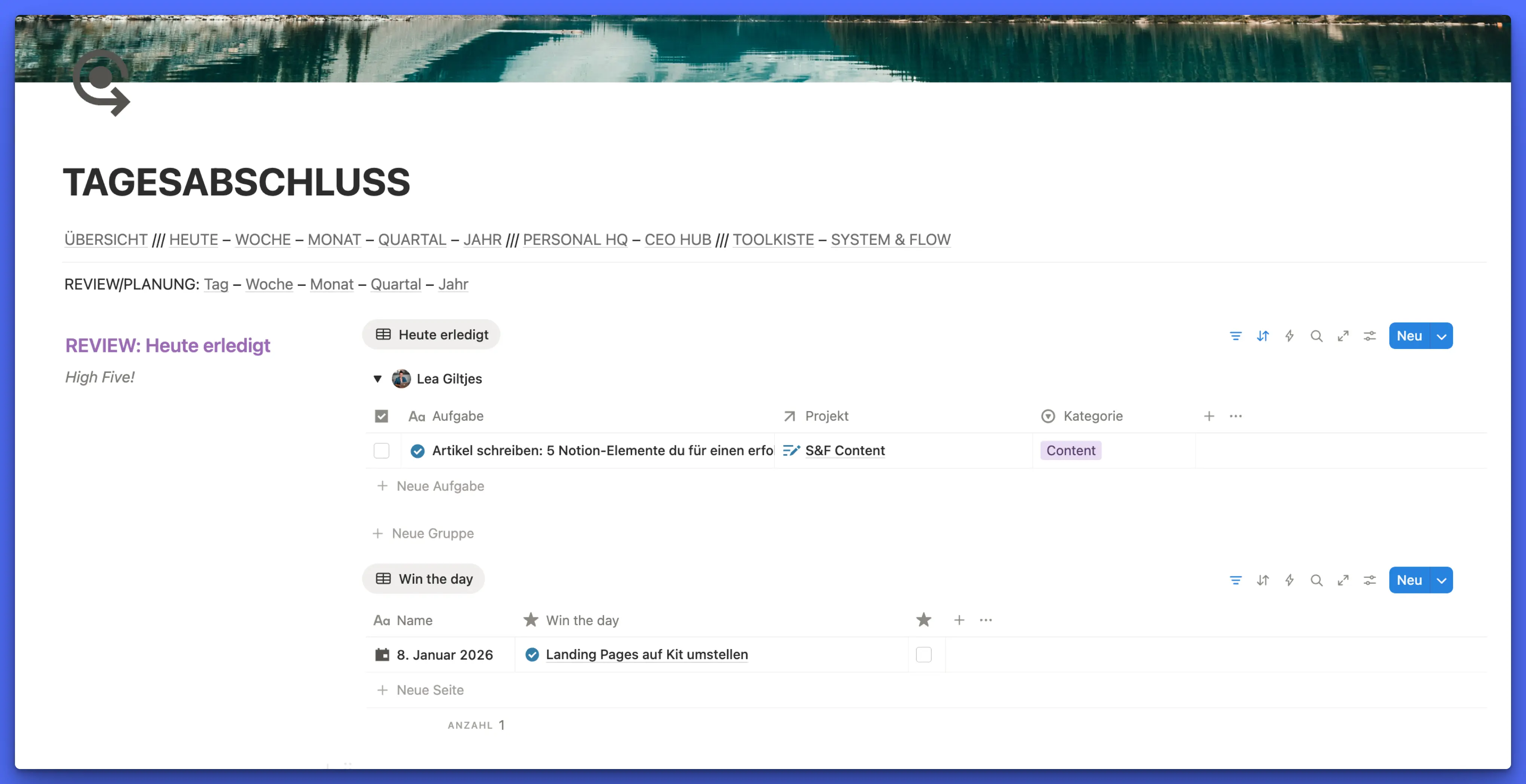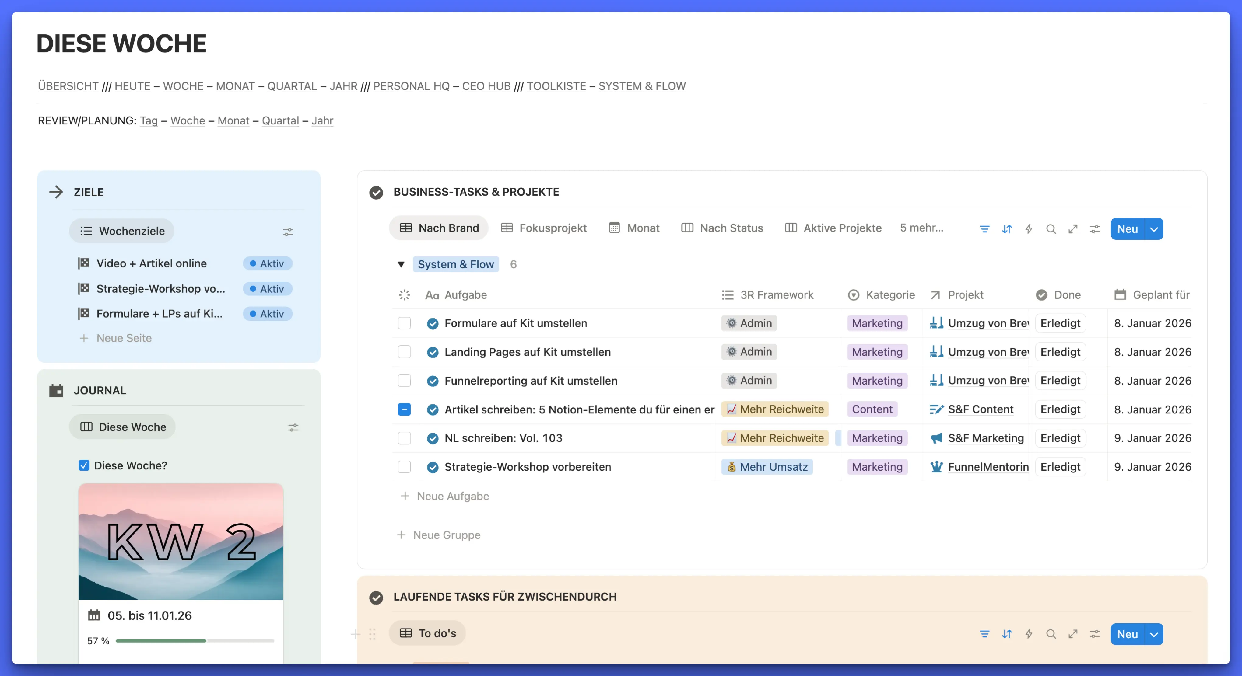 Neben den Aufgaben räume ich übrigens auch in meiner Ressourcen- und Notizen-Datenbank auf und stelle sicher, dass alles vernünftig verknüpft ist.